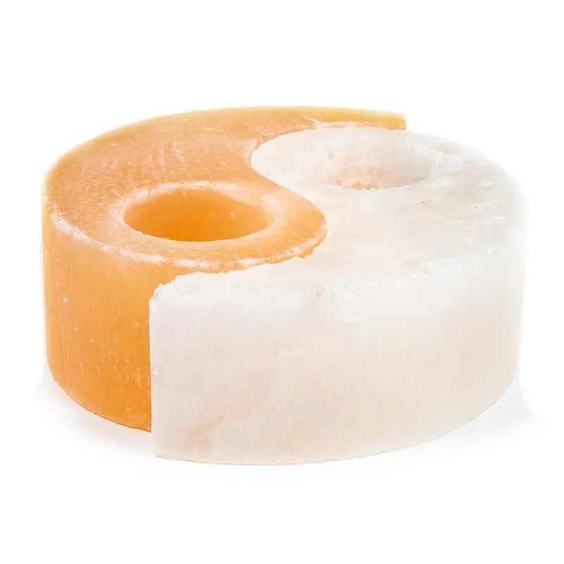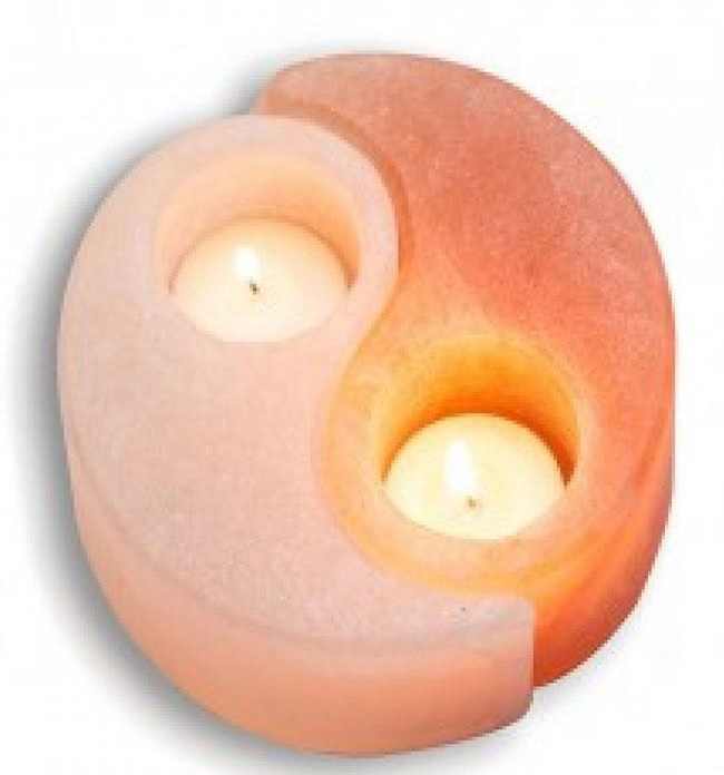 Yin Yang forme sel de l'Himalaya bougeoir cristal naturel rose sel de roche lumière de thé artisanat naturel fabriqué à la main