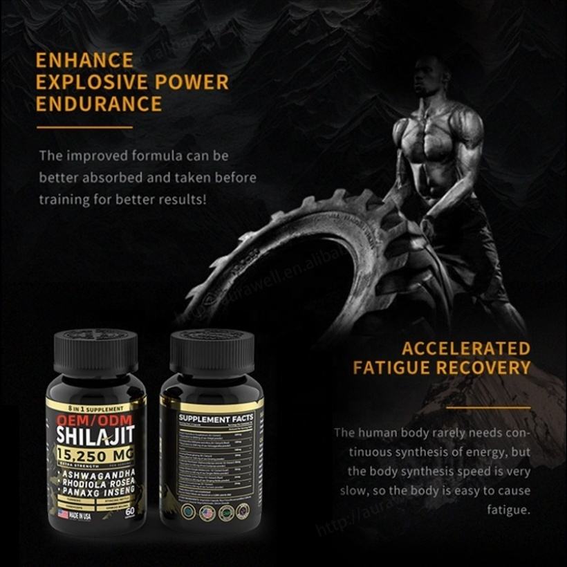 Supplément de Shilajit de l'Himalaya Booster d'énergie avec Ashwagandha Rhodiola Rosea Panax Ginseng Pure Shilajit Capsules Shilajit