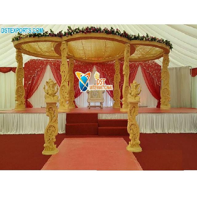 Hindu Wedding Floral Carving Wooden Mandap