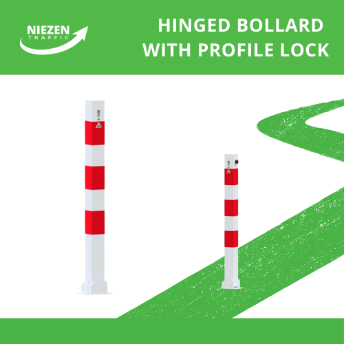 Poteau de sécurité en acier pliable à haute visibilité de 900mm avec verrouillage automatique et bandes réfléchissantes de couleur blanche