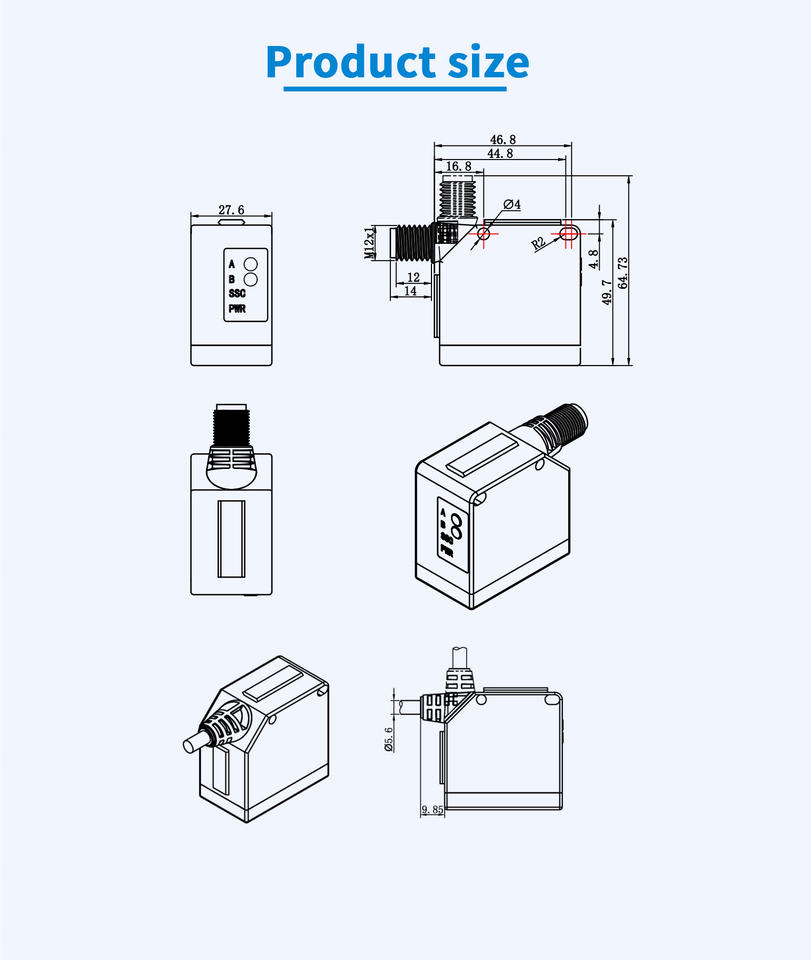 Capteur de distance laser optique TOF Hinson Private Label 5m, résolution 1mm, DC12-30V, Canopen + 2 sorties NPN, série SPR -10-50