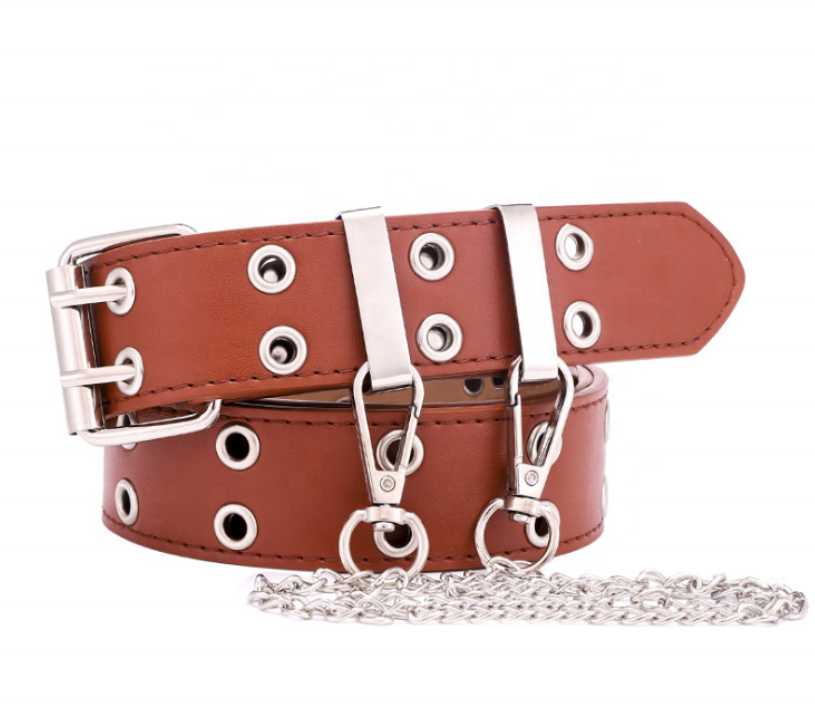 Belt Feature:Double Studded Holes Hip-hop hollow be