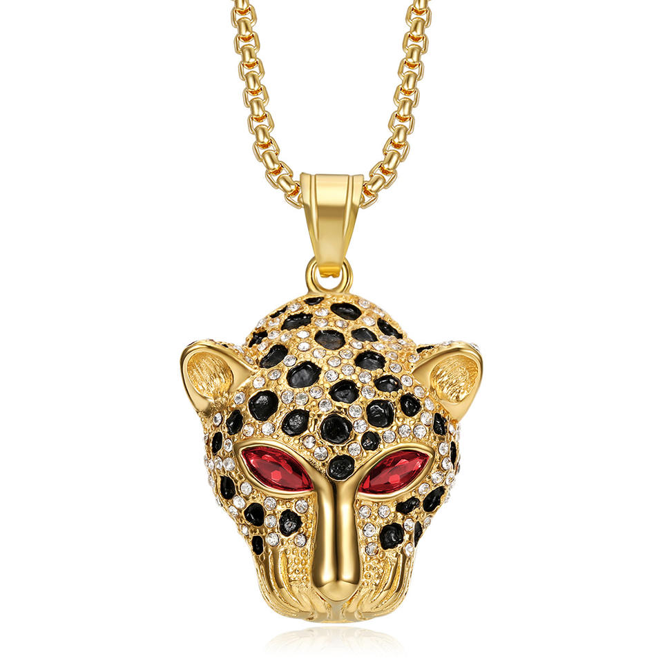 Hip Hop Animal léopard tête glacé CZ étanche 316 acier inoxydable pendentif mode bijoux colliers pour hommes femmes en gros