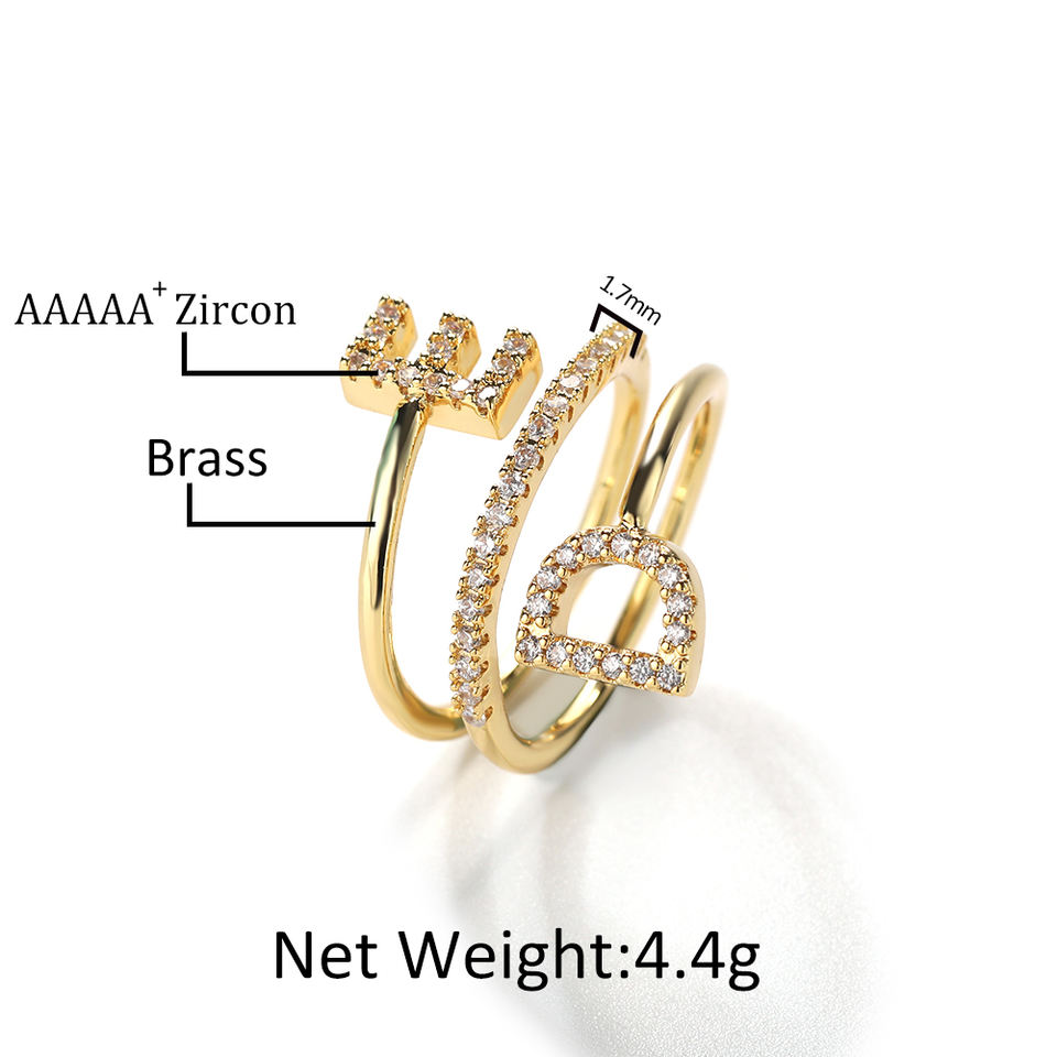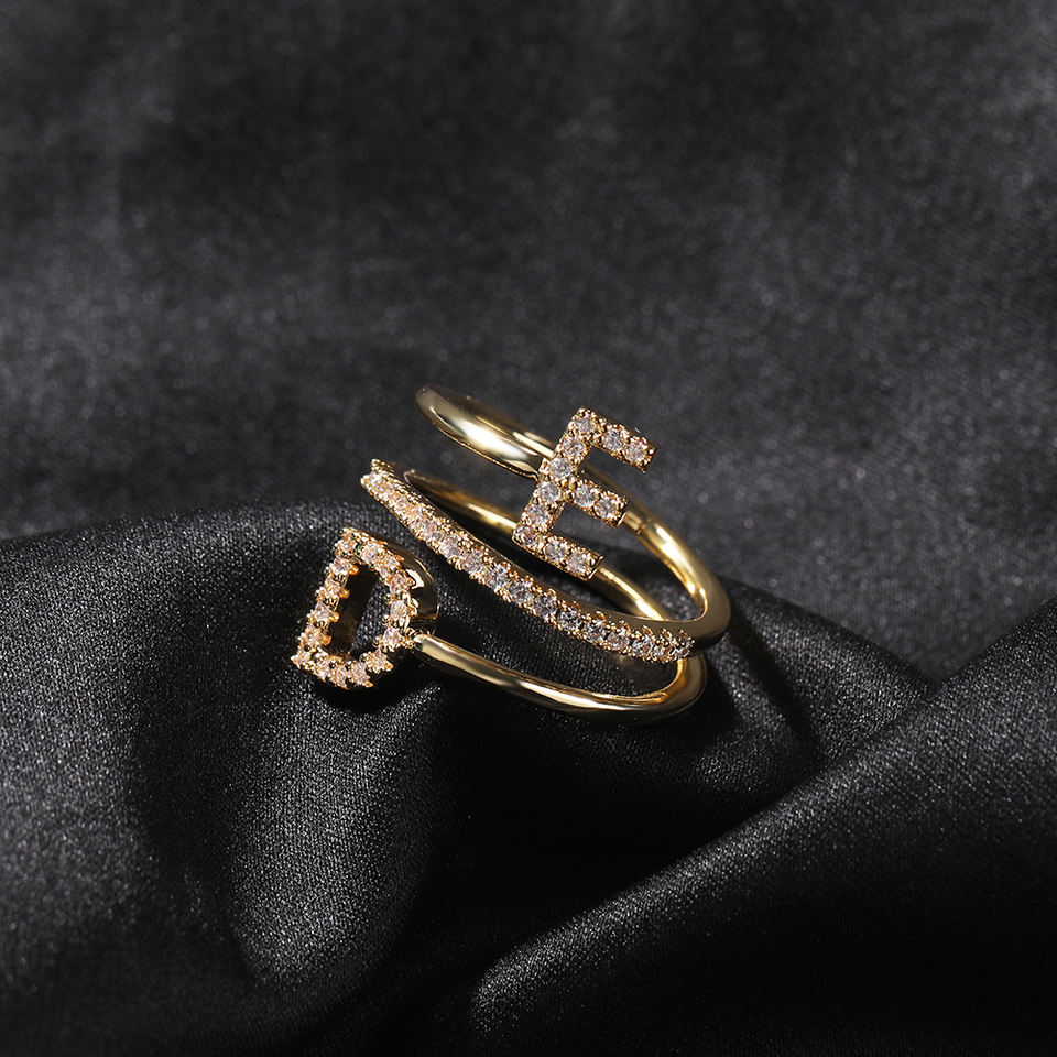 Bagues ajustables Hip Hop Bling Bling à deux lettres, bague personnalisée avec initiales, plaqué or 18 carats, bijoux tendance, bagues et bracelets DIY