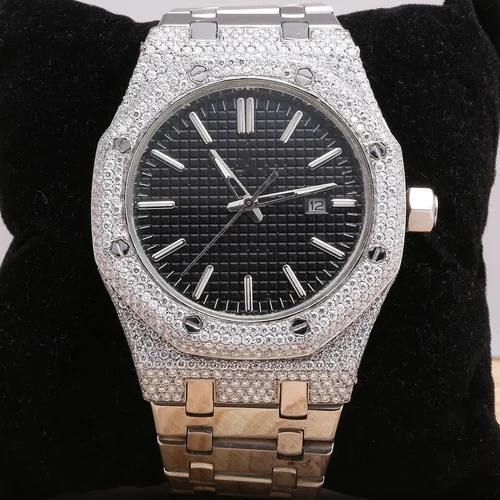 Hip Hop Bustdown 41MM Montre de marque glacée pour homme Réglage en nid d'abeille vvs Moissanite Montre classique en diamant