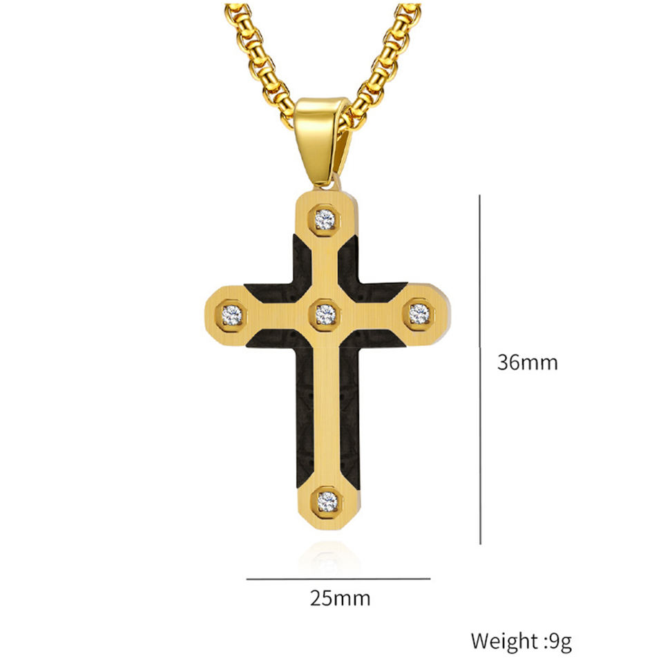 Hip Hop fibre de carbone Zircon croix religieuse Anti Non ternir étanche en acier inoxydable mode bijoux pendentif collier pour hommes