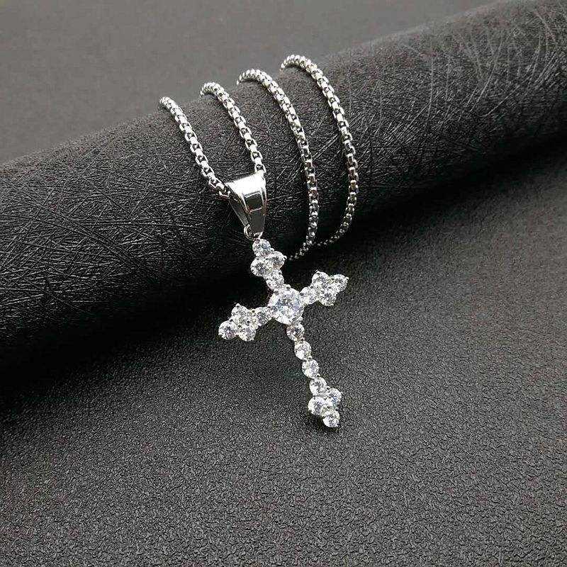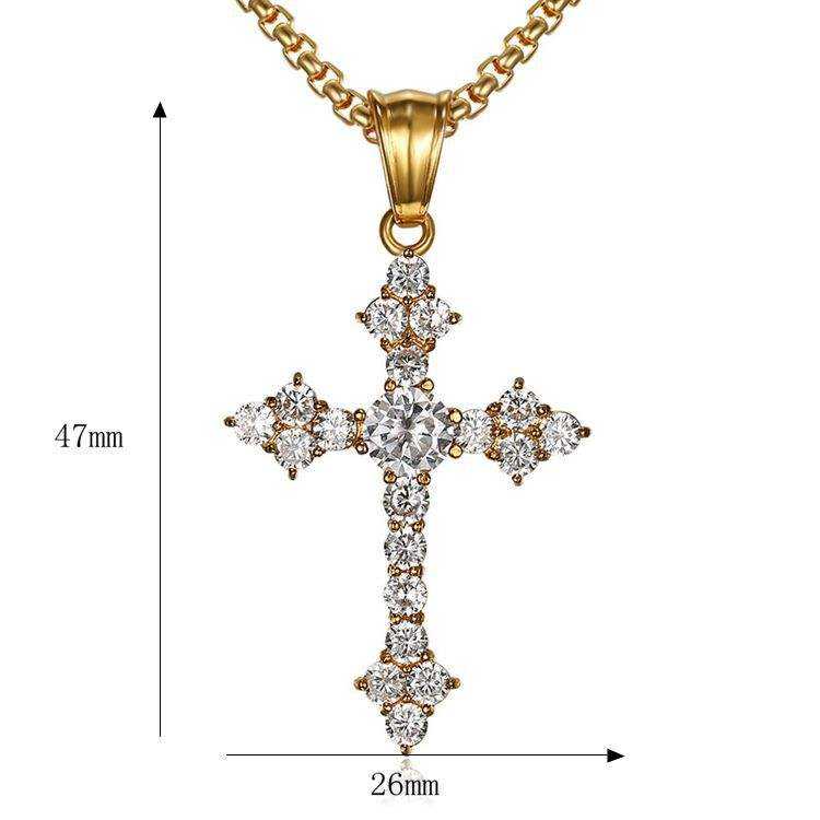 Pendentif Croix Catholique Hip Hop pour Hommes, Collier Religieux en Acier Inoxydable, Bijoux Chrétiens Imperméables et Inoxydables pour Homme