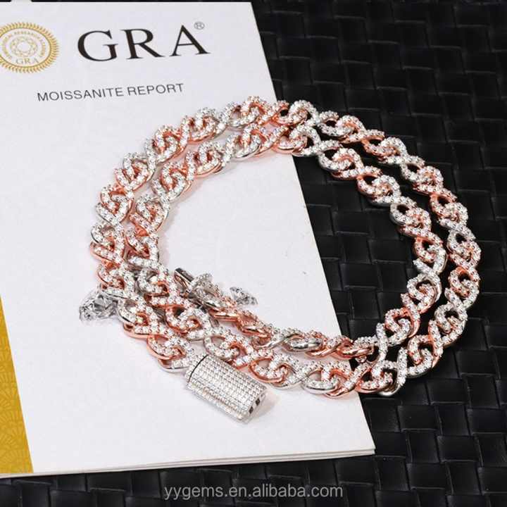 Chaîne Hip Hop 9 mm de large, 2 tons, plaquée or, argent 925, certificat GRA, diamant Moissanite VVS, chaîne cubaine