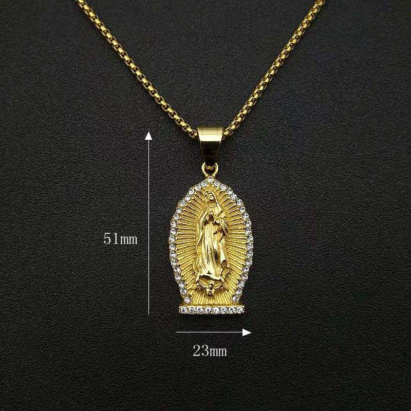 Hip Hop Christian Catholic Lady Mary Waterproof Tarnish Free Stainless Steel Fashion Jewelry Pendants Necklaces for Male Man Men