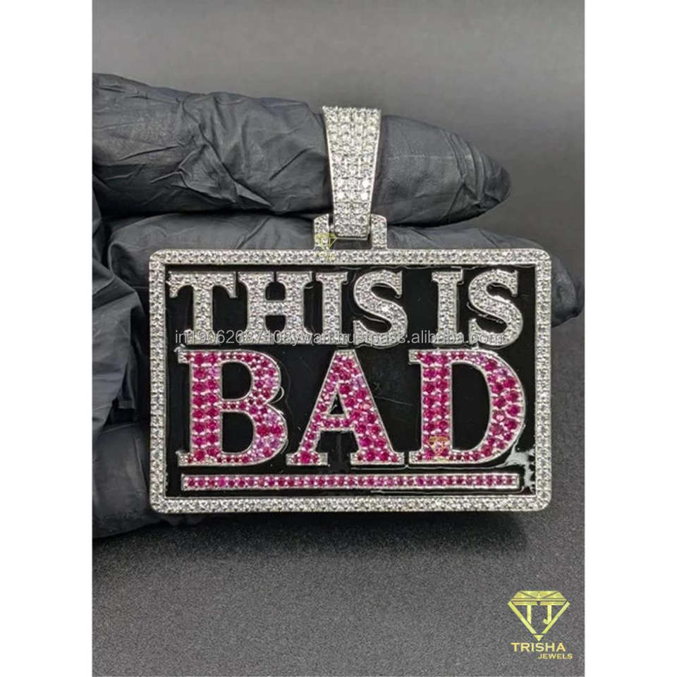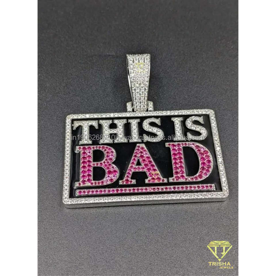 Hip Hop Custom Name "THIS IS BAD" Iced Pendant Moissanite Diamonds in 925 Sterling Silver for Mens