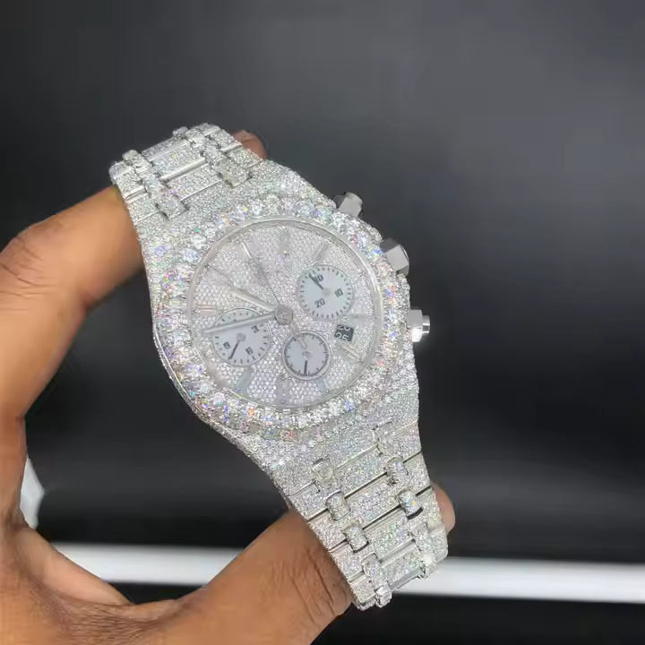 Top marque de luxe hommes en acier inoxydable bande montre personnalisée diamant glacé laboratoire cultivé Hip Hop analogique Simple Antique mode