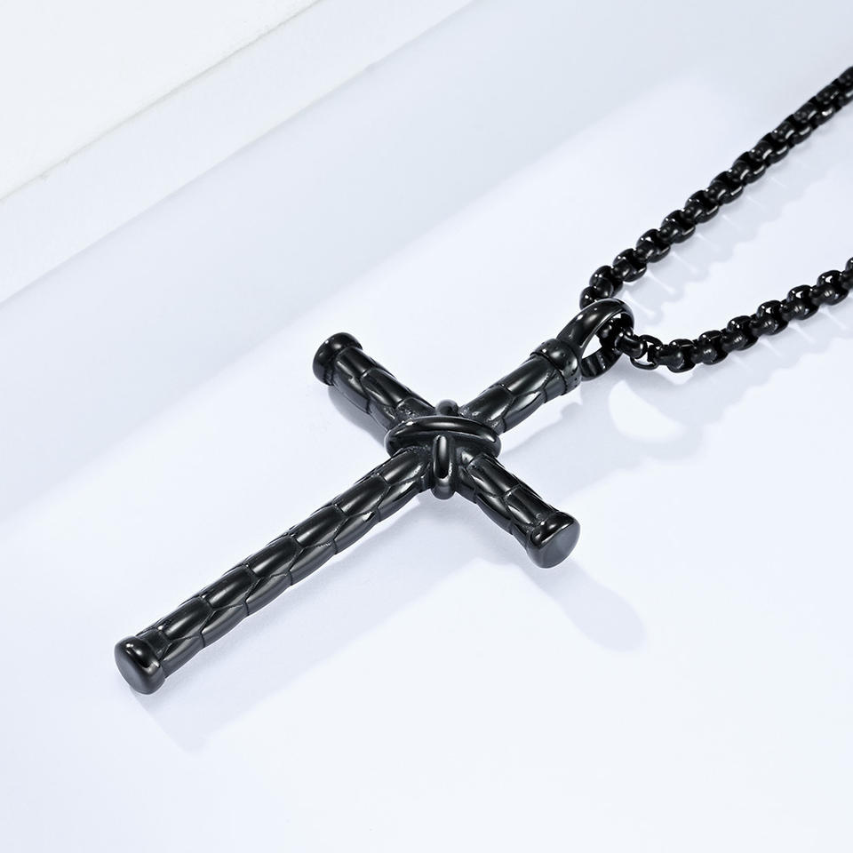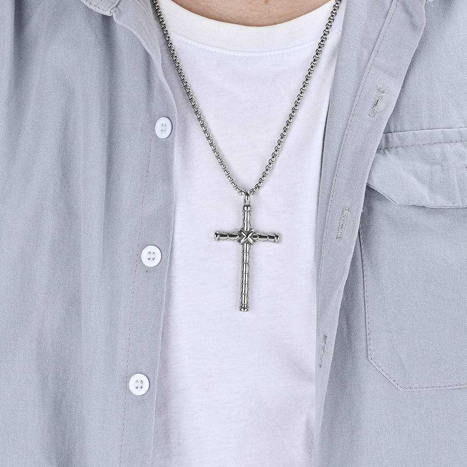 Collier Pendentif Croix Cylindrique Hip Hop de Haute Qualité en Acier Inoxydable Jésus Chrétien, Bijou Tendance pour Hommes, Vente en Gros