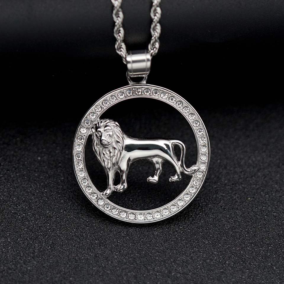 Hip Hop Hollow Lion Iced Out CZ Coin Stainless Steel Gold Plated Pendant Jewelry Fine Fashion Jewelry Necklace for Men Wholesale