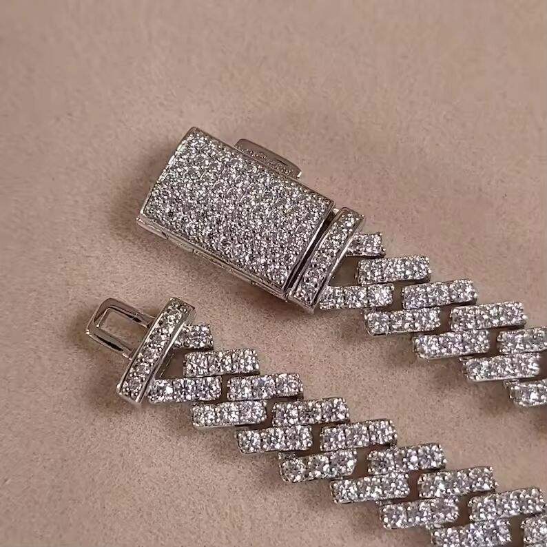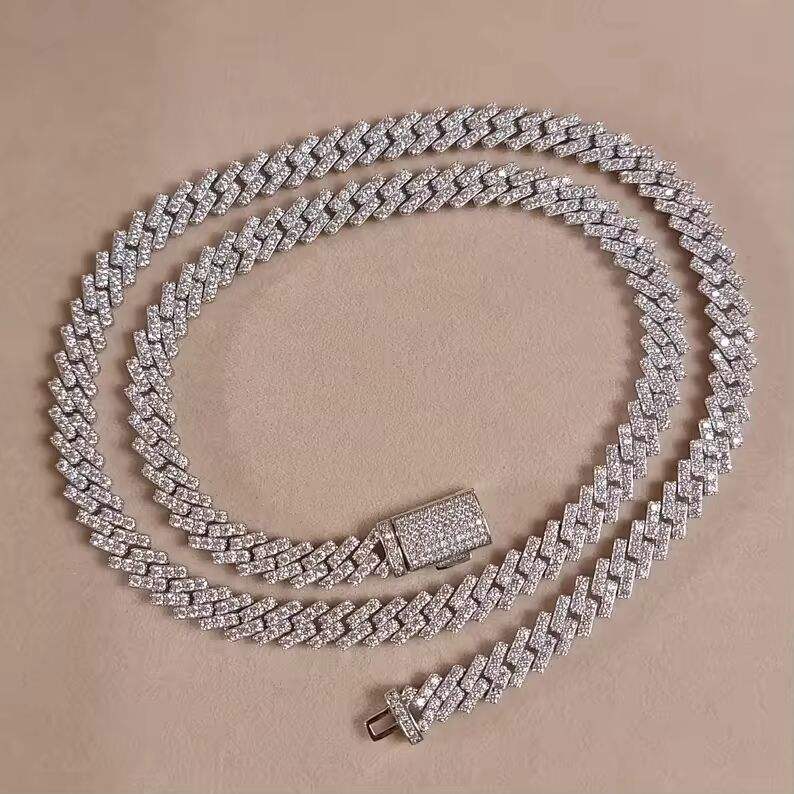 Collier Chaîne Cubaine Hip Hop Iced Out en Argent Sterling 925 avec Micro-Pavé de Diamants Blancs, Bijou Tendance