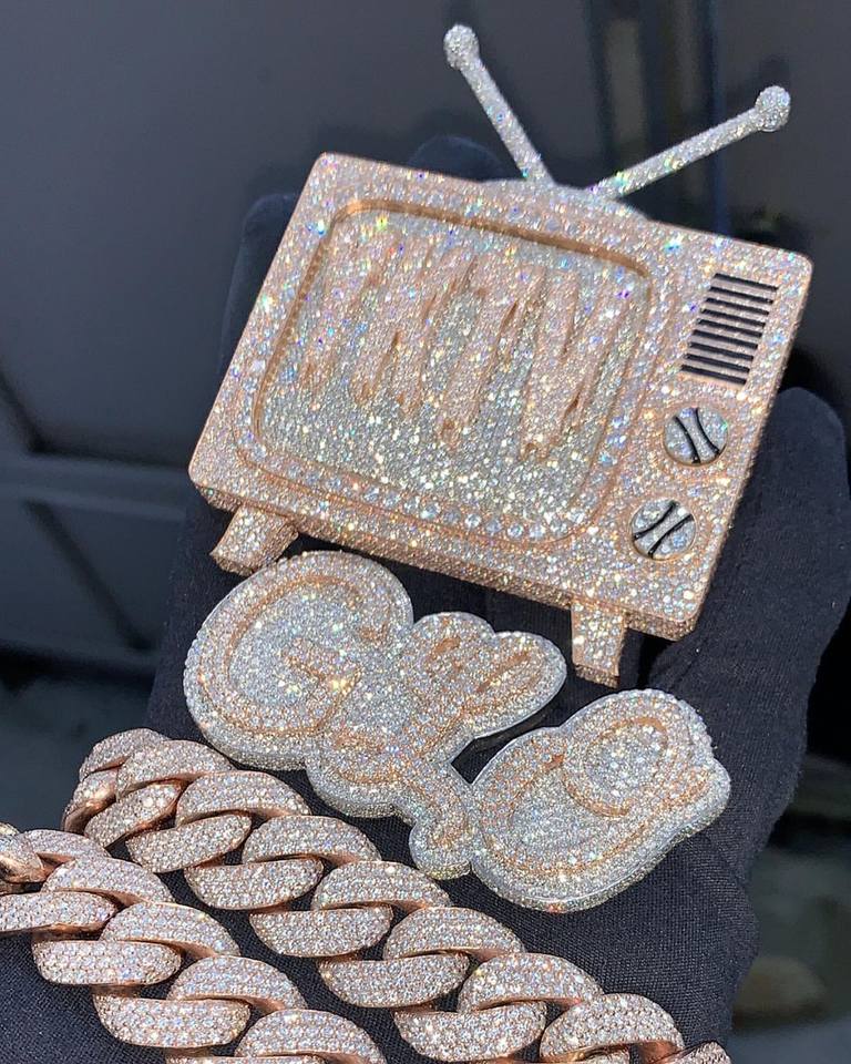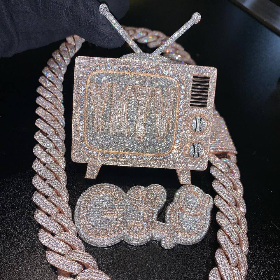 Collier Pendentif Unisexe en Argent 925 Certifié IGI, Design Téléviseur Rétro Hip Hop Bling Moissanite Iced Out