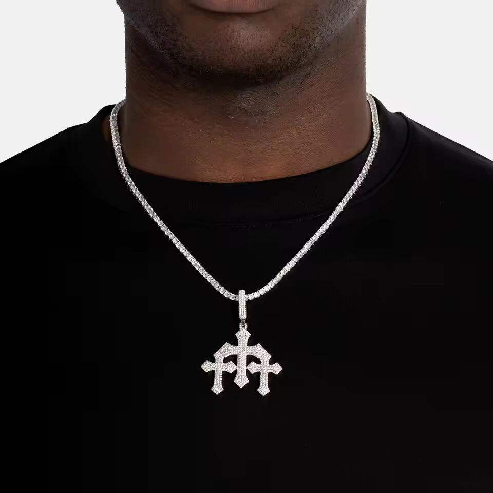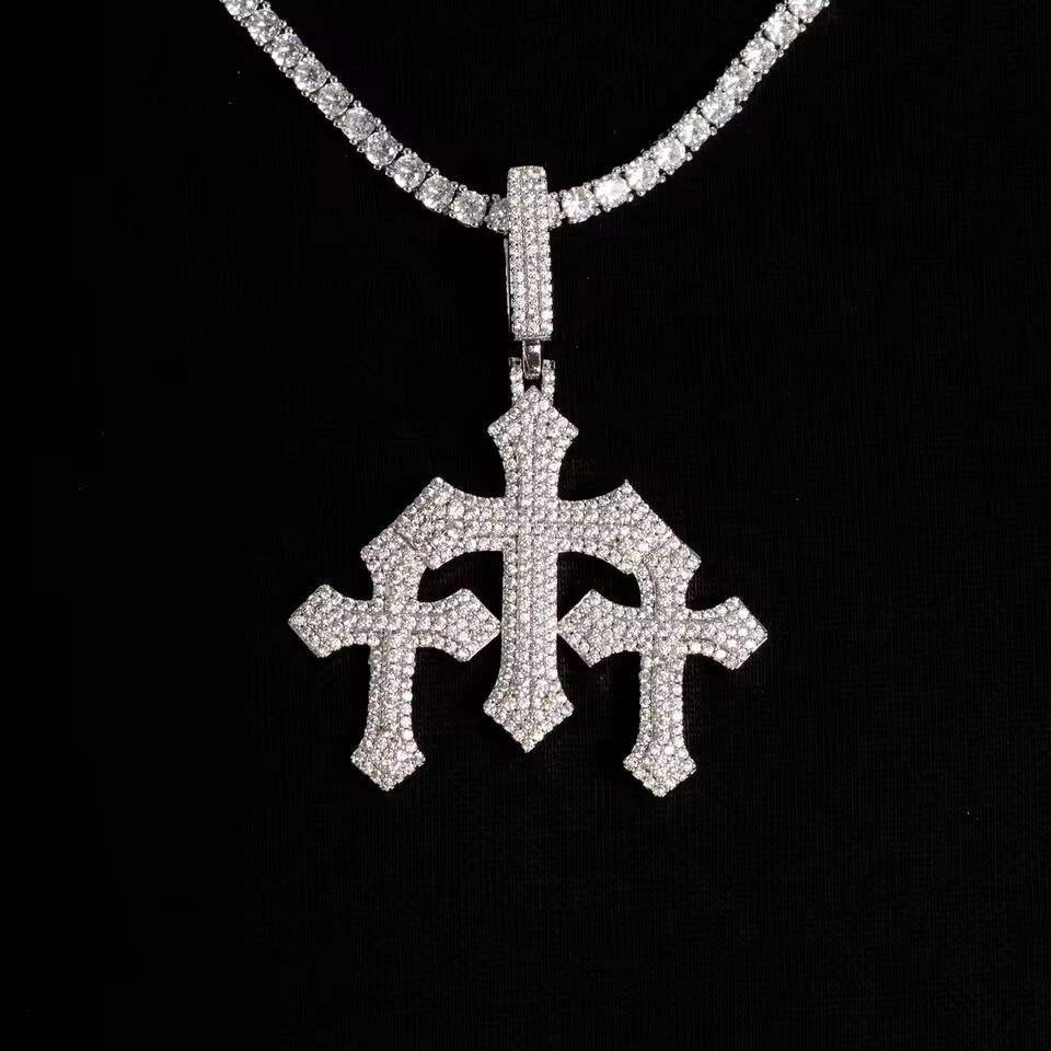 Collier pendentif triple croix Hip Hop Iced Out en argent sterling 925 avec moissanite micro-pavée, bijou de déclaration pour soirée