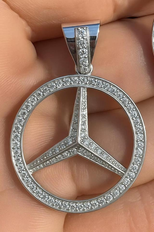 Hip Hop Mercedes Auto Logos Bijoux glacés Bijoux en argent sterling 925 Bijoux fantaisie Colliers pendentifs