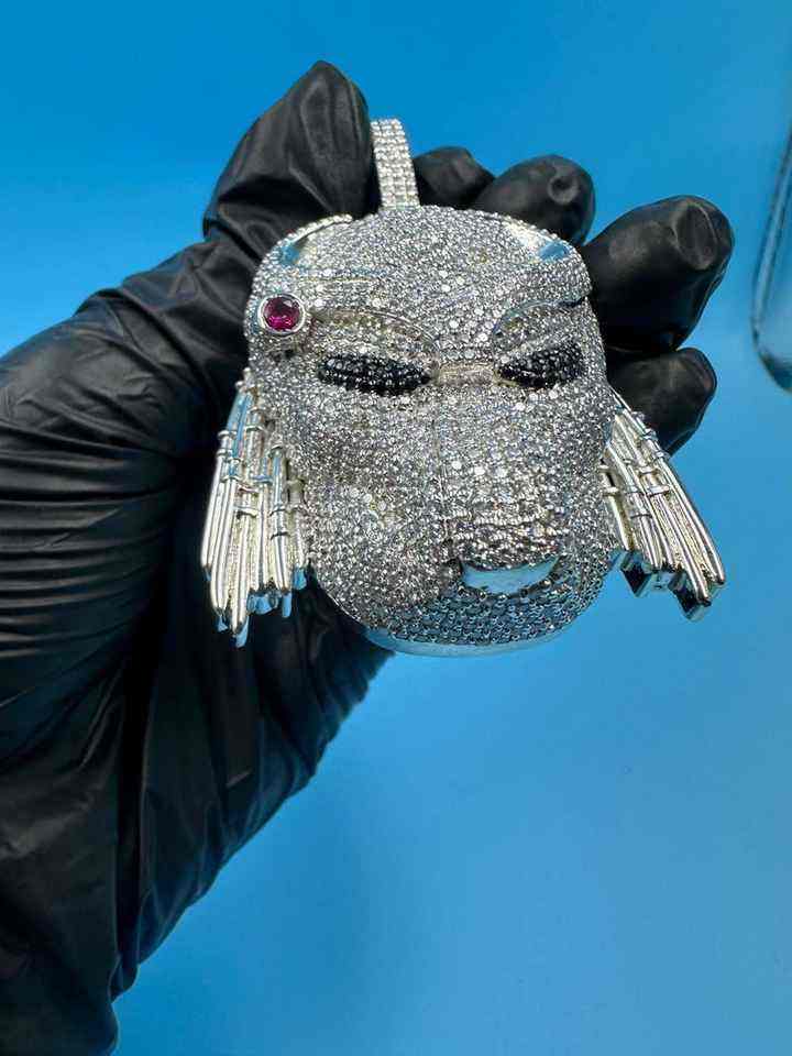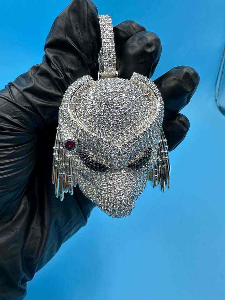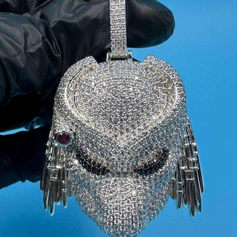 Pendentif Masque de Prédateur Hip Hop en Moissanite, Collier Chasseur Alien Glacé, Style Rappeur Luxe Bling, en Argent Sterling Plaqué Rhodium