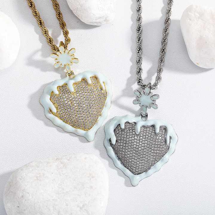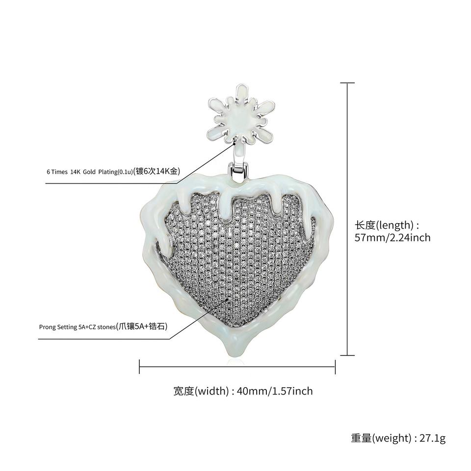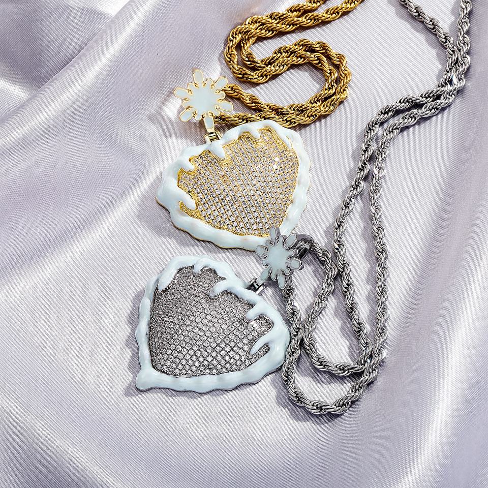 Hip Hop huile dégoulinant chandail lumineux coeur CZ pendentif glacé glace feu Design mode laiton plaqué or Zircon rappeur collier