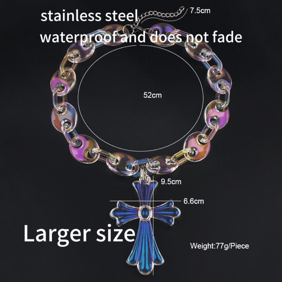 Collier Ras du Cou Épais Acrylique Transparent Thème Jésus Hip Hop Punk Personnalisé pour Hommes et Femmes, Pendentif Croix Style Nez de Cochon, Bijou Tendance Garçon Ado