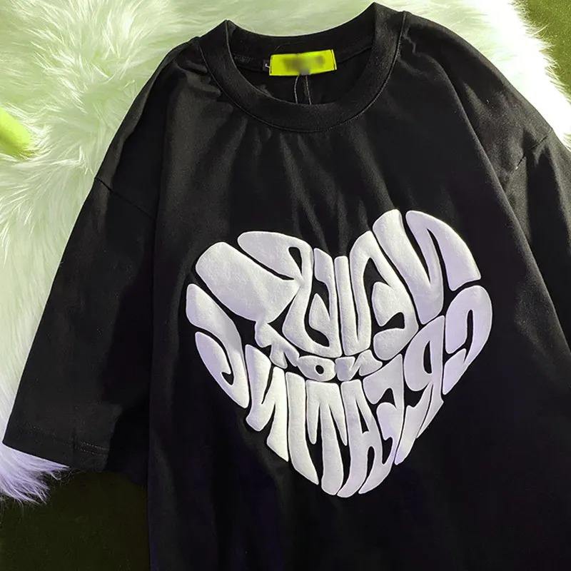 Hip Hop Puff Printing T-shirts en coton lourd vierge de haute qualité Logo personnalisé T-shirt surdimensionné à épaules tombantes