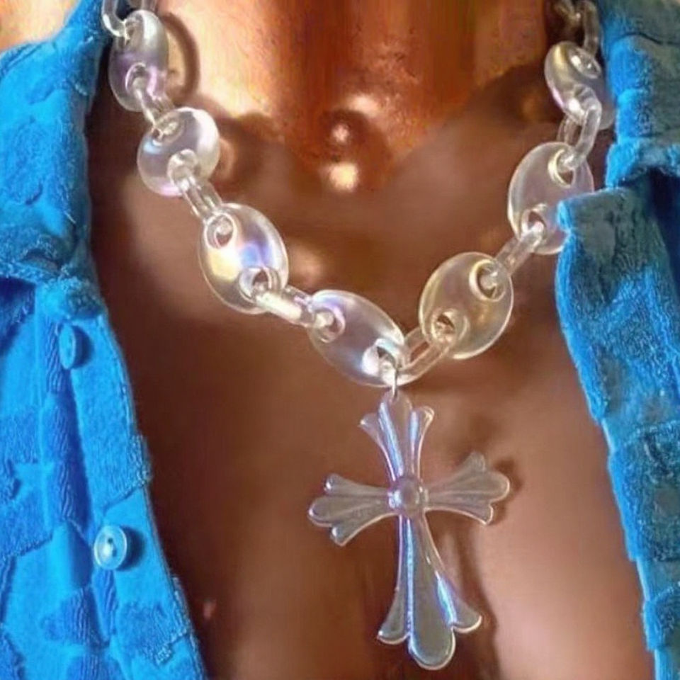 Hip Hop Punk bijoux pour adolescents personnalisé croix pendentif gros tour de cou clair jésus Laser UV Cool griffe réglage anniversaire