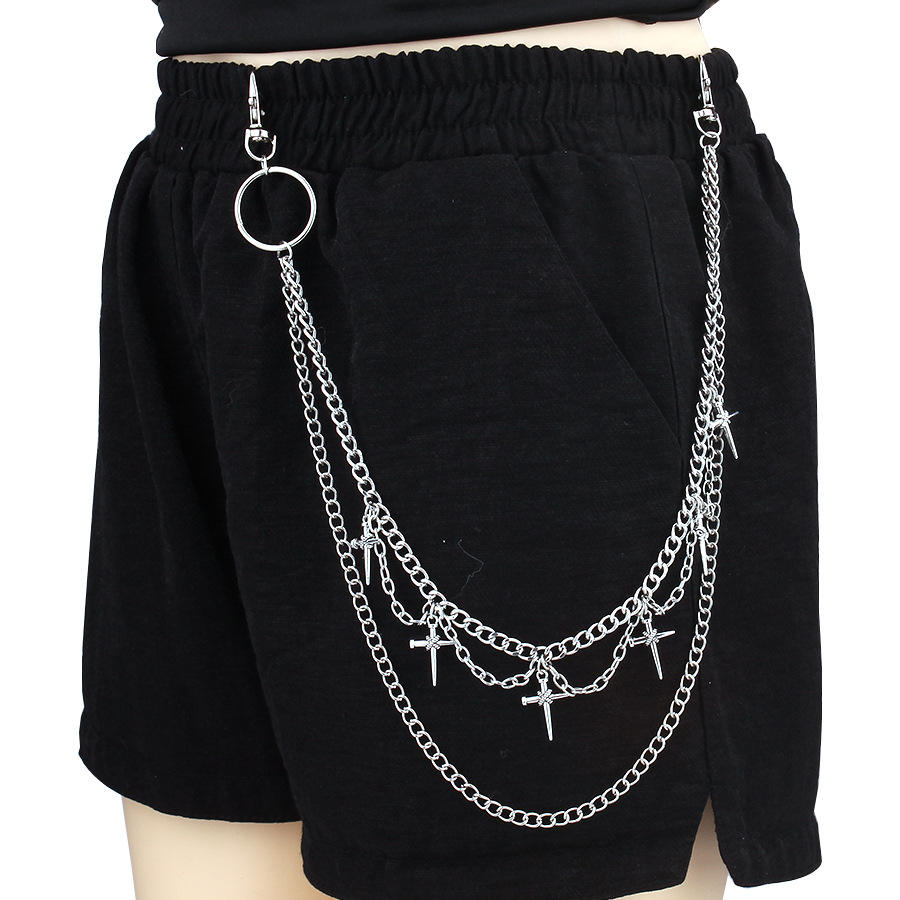 Chaîne de taille double couche style Hip Hop Punk Metal pour pantalon décontracté, chaîne de corps tendance