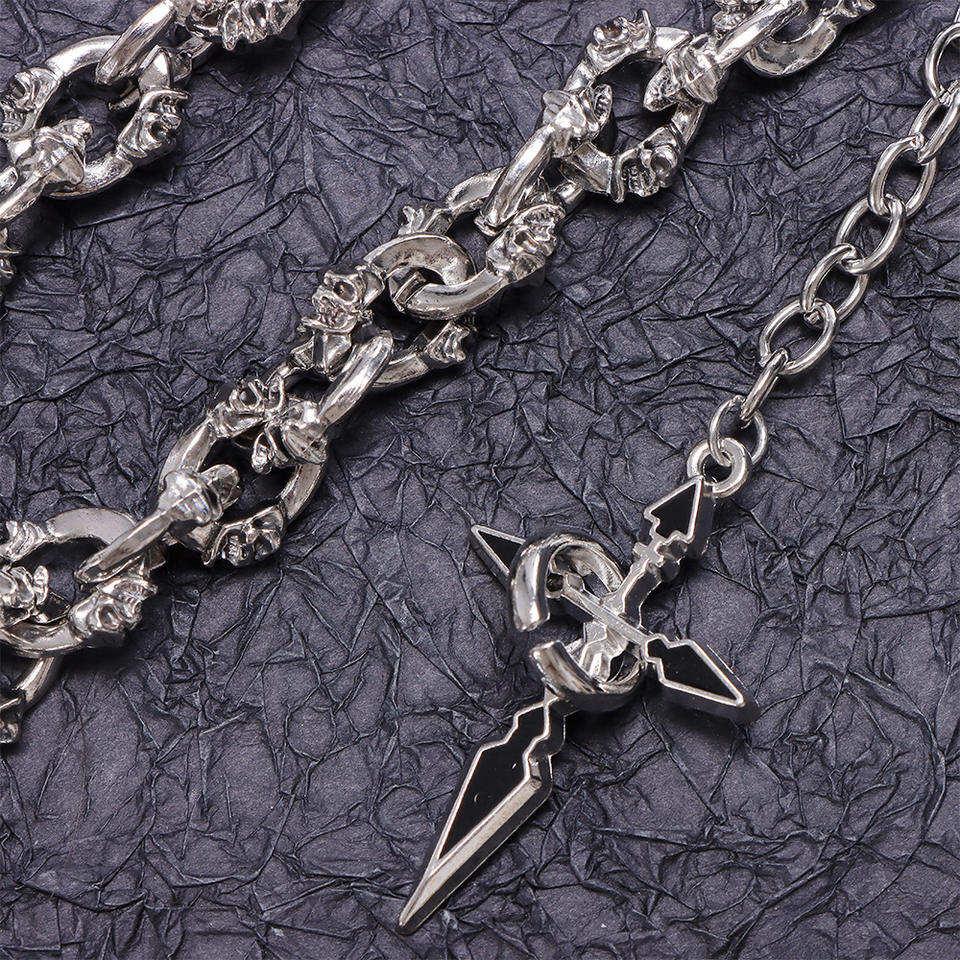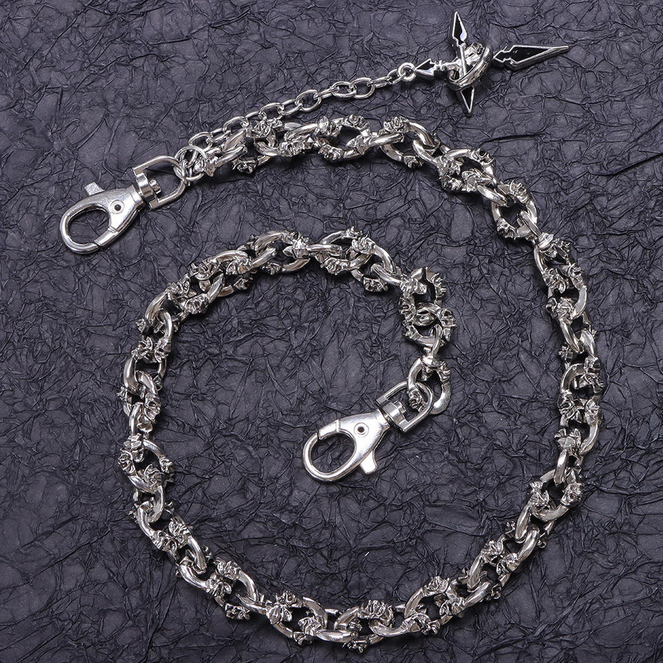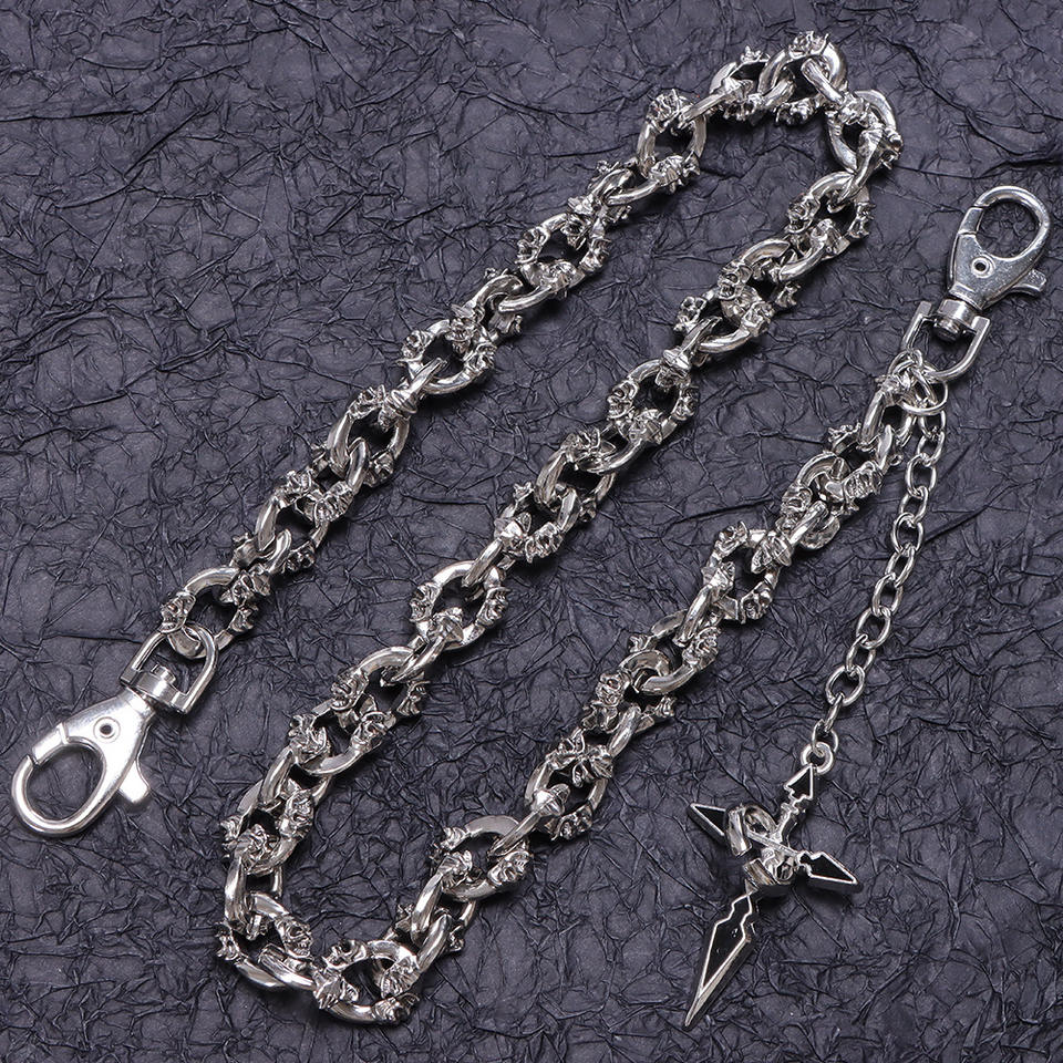 Chaîne de taille Hip Hop Punk Metal avec pendentif croix, chaîne de pantalon à crâne simple couche, chaîne de corps tendance style streetwear décontracté