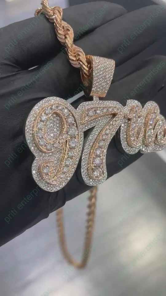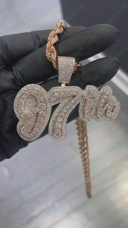 Pendentif Bling Hip Hop Rapper en Argent 925, Bijou Personnalisé avec Logo Lettre Nom en Moissanite VVS, Pendentif Plaqué Or en Argent 925