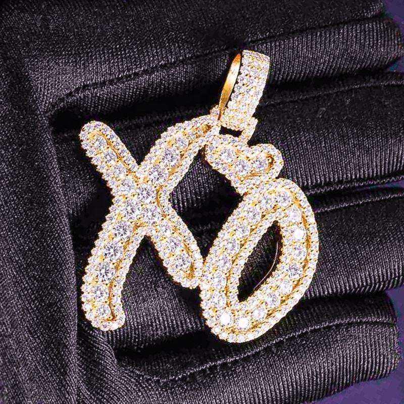 Pendentif Lettre Initiale VVS D en Moissanite Colorée pour Homme, Style Hip Hop, en Argent 925, Sertie de Pierres