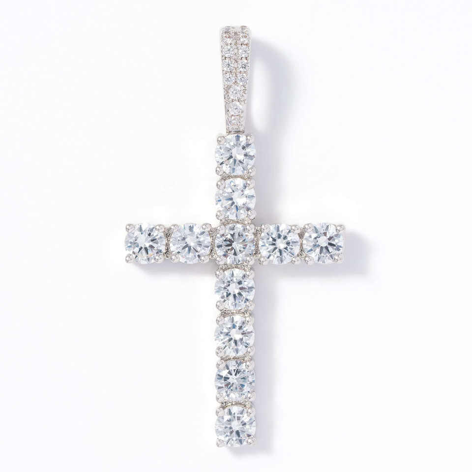 Pendentif Croix Hip Hop Bling Bling pour Homme, en Argent 925, Moissanite Couleur D, Grand Diamant de 5mm, Breloque Croix Givrée