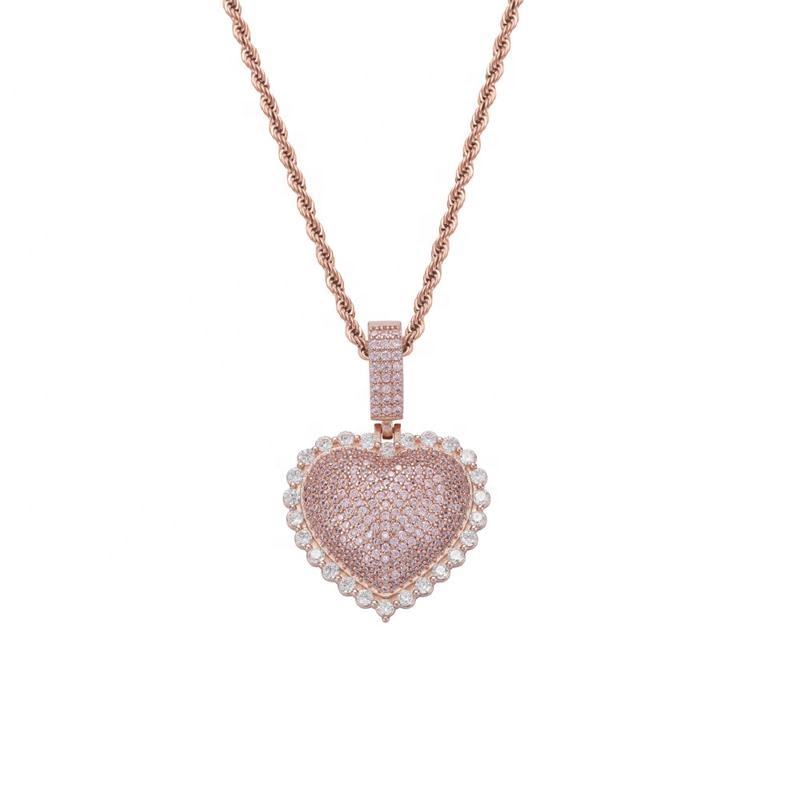 Nom du produit:Hip hop rose or laiton et bling zircon amour coeur pendentif collier