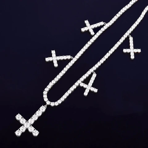 Collier chaîne à maillons Hip Hop en argent sterling 925 plaqué rhodium, serti de pierres Moissanite, avec pendentif croix - Bijou unisexe