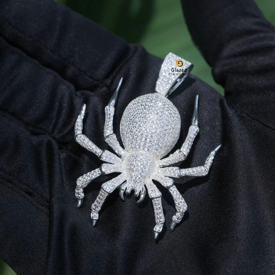 Hip Hop rond brillant coupe laboratoire diamants cultivés buste vers le bas 925 pendentif araignée en argent Sterling pour unisexe