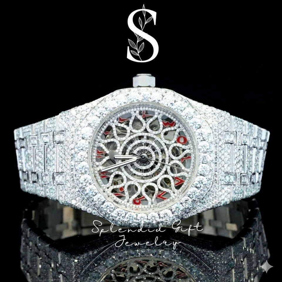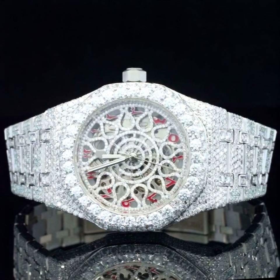 Montre Hip Hop en acier inoxydable argenté, mouvement automatique japonais, cadran arabe, diamants Moissanite qualité VVS, pierres de qualité