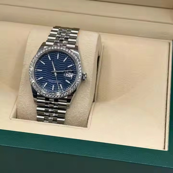 Hip Hop Style cadran bleu automatique VVS diamant Moissanite montre coupe Quartz mouvement verre cadran fenêtre Date fonction pour hommes femmes