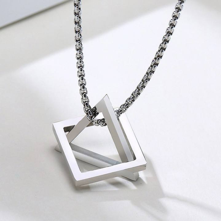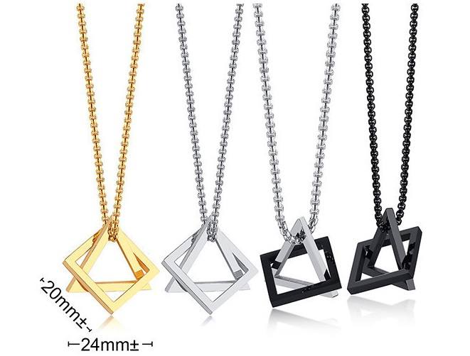 Hip Hop Style Hommes Titane Acier Triangle Carré Géométrique Pendentif Long Lien Chaîne Collier pour Anniversaire