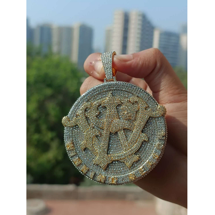 Pendentif de style hip-hop coupe ronde VVS Moissanite pendentif en diamant pendentif personnalisé cadeau de mariage pour hommes en argent sterling 925