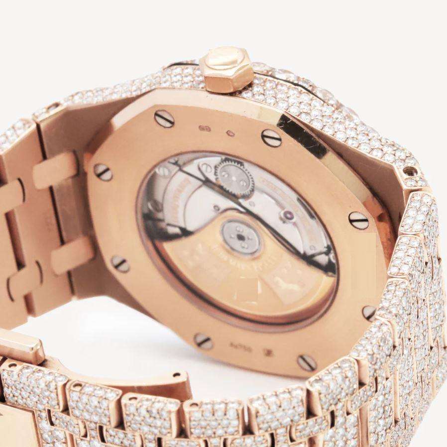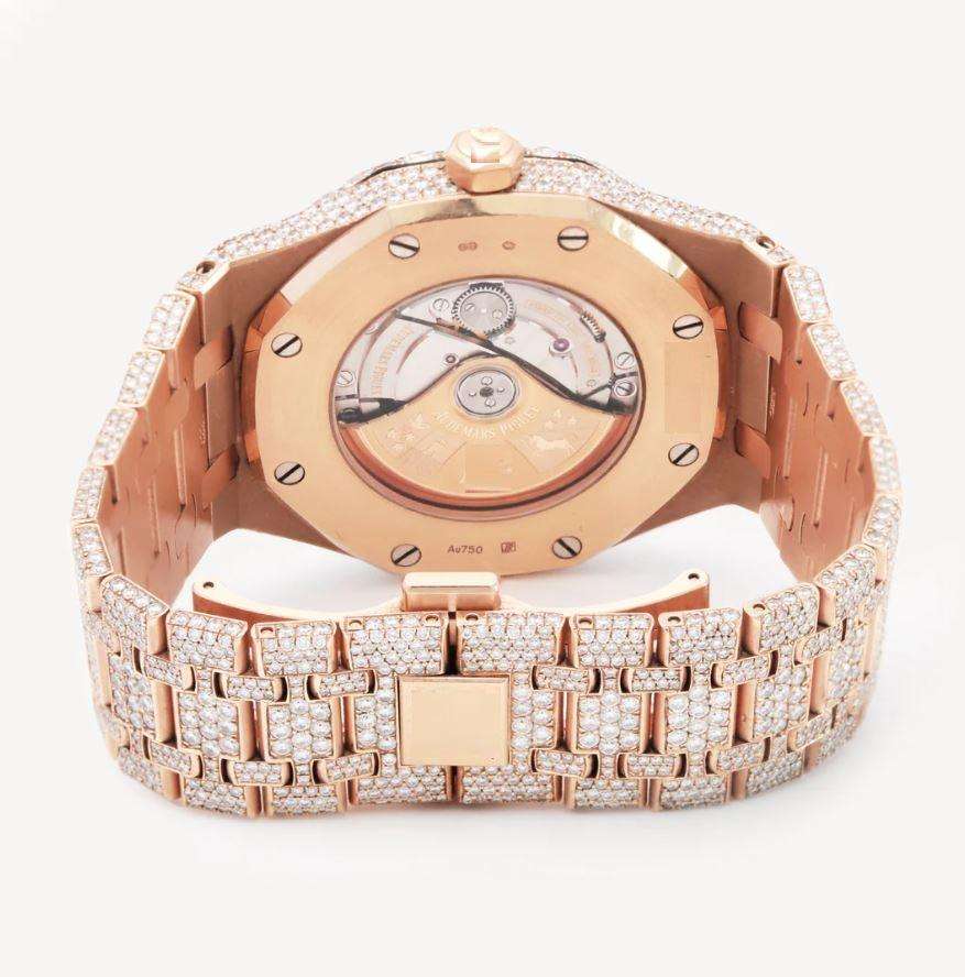 Hip Hop Style Rose Ton Or Moissanite Diamant Clouté Glacé Diamant Arabe Cadran Date Fonction Quartz Montre Pour Hommes Femmes.