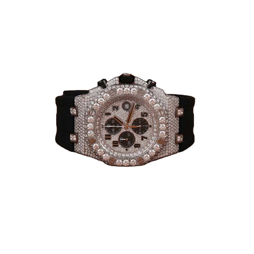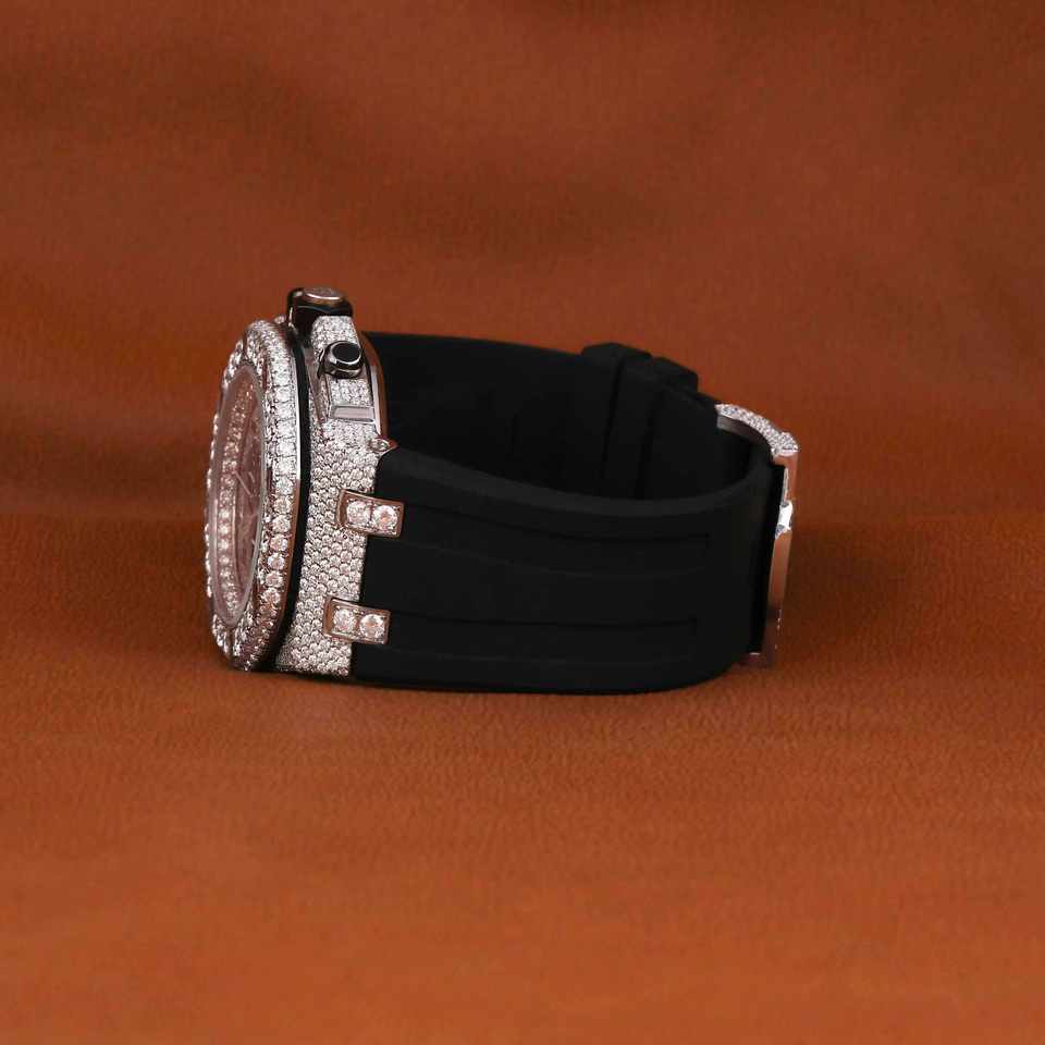 Montre en acier inoxydable de style hip-hop avec bracelet en cuir, résistante à l'eau, cadran analogique, fenêtre en verre pour hommes