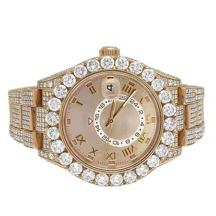 Montre de Style Hip Hop pour hommes Moissanite diamant montre glacé luxe 41 MM coupe ronde montre cadeau pour hommes