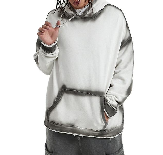 Sweat-shirt à capuche deux tons pour hommes, Hip Hop, Vintage, délavé, effet vieilli, coupe brute, épaules tombantes,