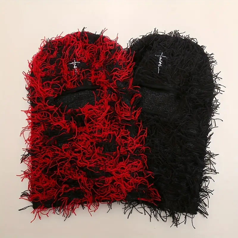 Hip Hop Hiver Masque de Ski Complet Fourrure Fourrure Fuzzy Grassy Knit Masque de Ski Distressed Balaclava Avec Logo Personnalisé