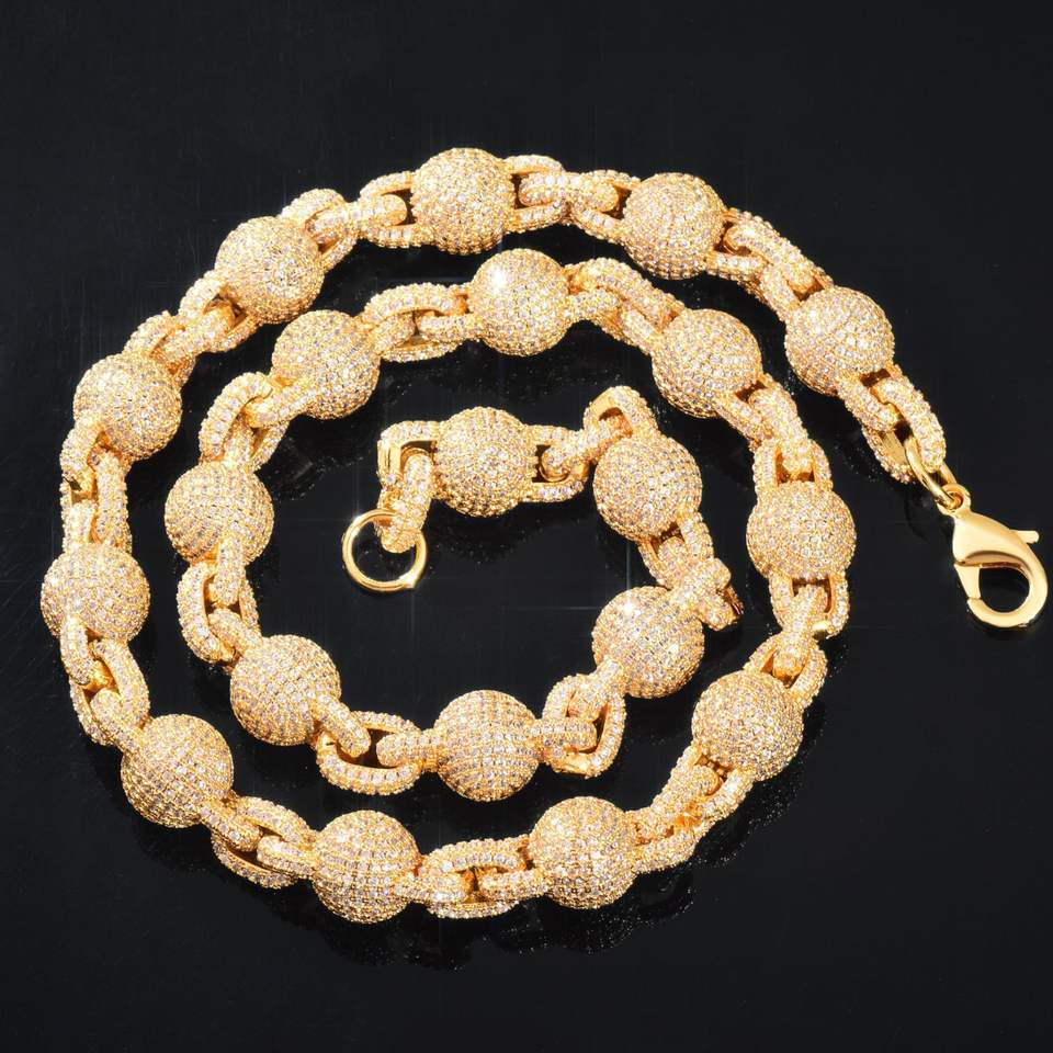 Collier chaîne de rap urbain en cuivre incrusté de zircon avec perles rondes, accessoire de mode personnalisé, vente en gros, approvisionnement direct