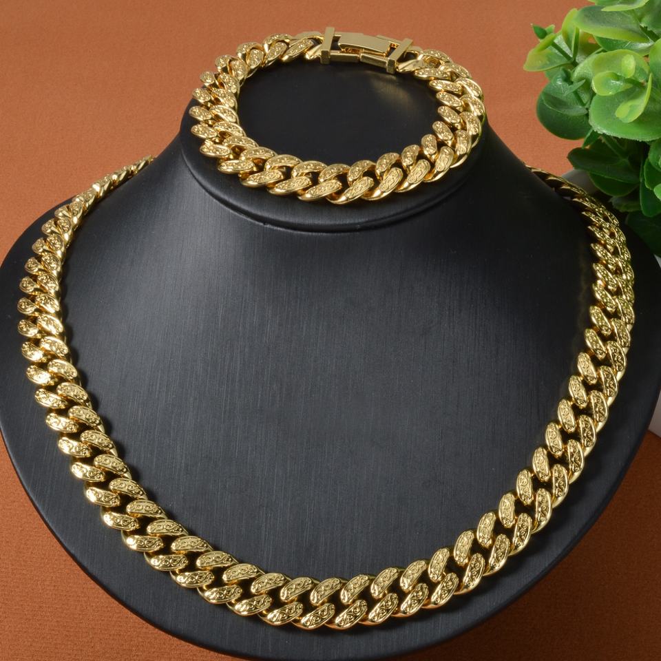 Ensemble collier et bracelet Hiphop Cube Chain plaqué or 18 carats, Italie, laiton 750