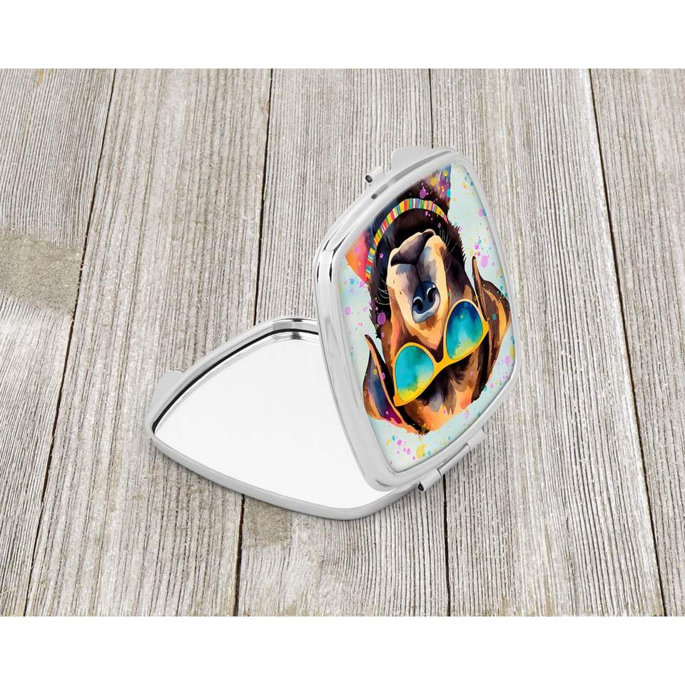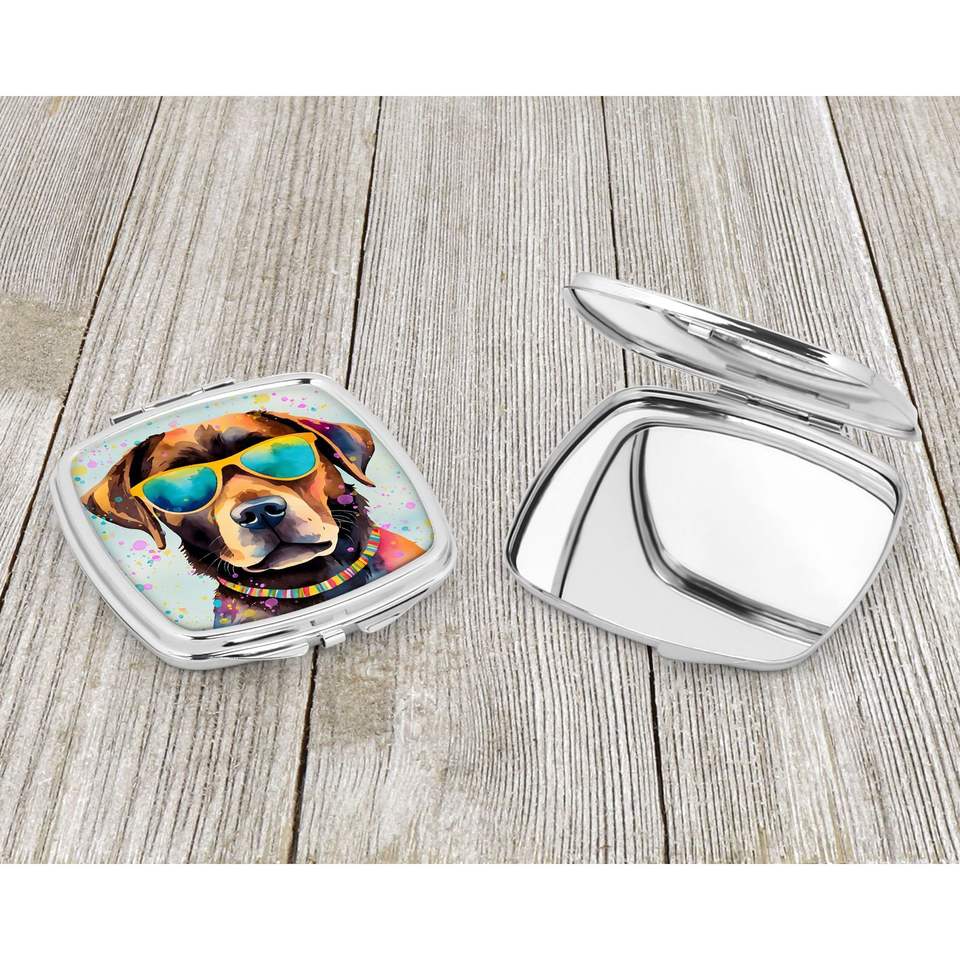 Hippie Dawg Compact Mirror Chocolate Labrador Decorative Pocket Makeup Mirror for Women Girls Travel Makeup Mirror Folding