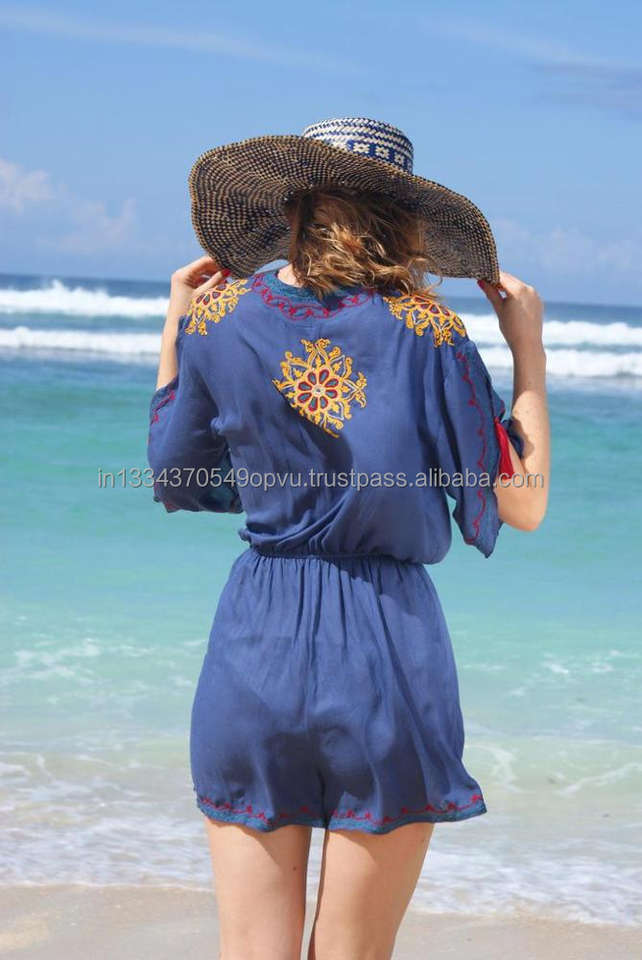Hippie Ample À La Main Broderie Combishort Jeune Fille Vêtements De Plage Boho Tunique Parfait pour La Plage & Resort Chaude Barboteuse Robe
