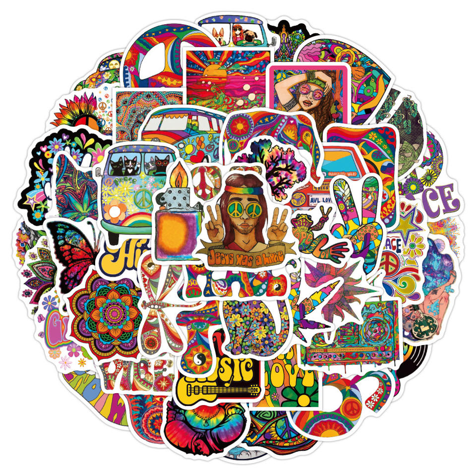 Autocollant graffiti de personnalité Hippie, autocollant de valise, ordinateur portable, valise, skateboard, voiture, vente en gros