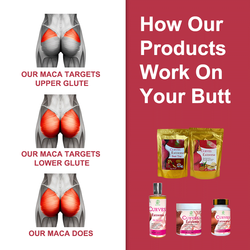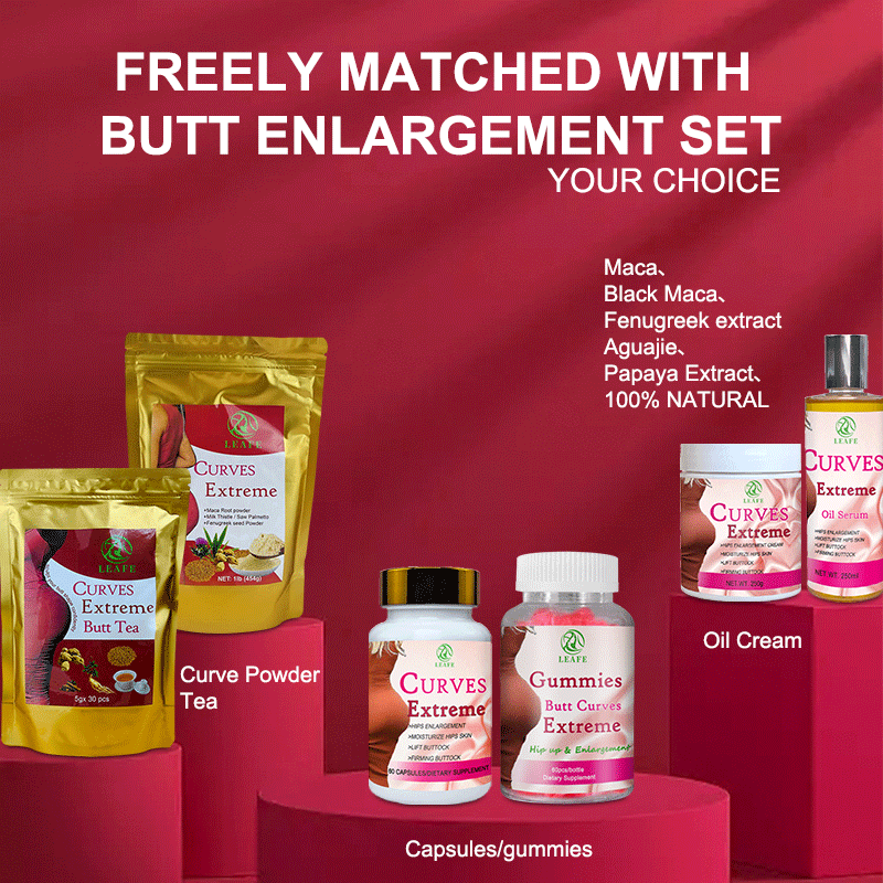 Gamme d'ensembles de produits:Crème Maca pour les fesses 6-en-1, Sérum Huile en Capsules, Gommes, Poudre, Thé.