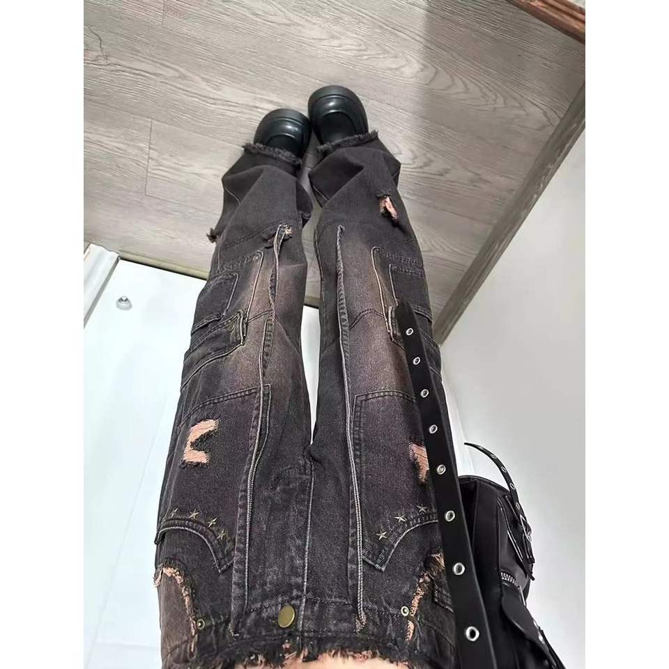 Hiromi 2025 printemps nouveau Style américain rétro en détresse bord brut noir coton Denim femmes respirant botte coupe large jambe pantalon
